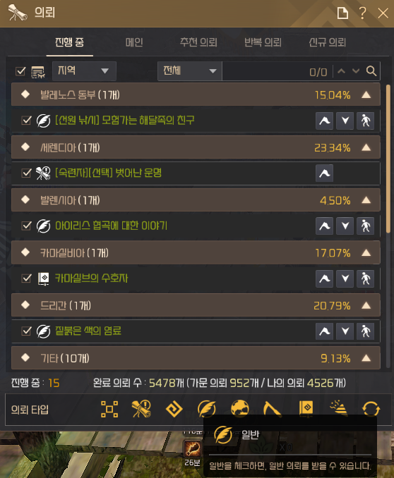 - 전투, 생활, 방문 주간 의뢰 중 랜덤 3종 지정